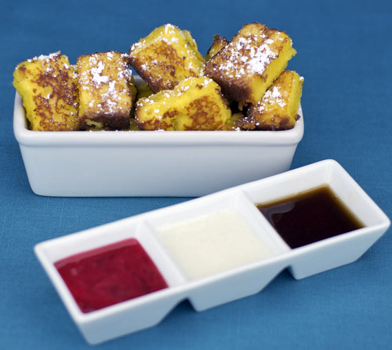 Put away your forks. Today, we’re eating French toast with our fingers. These little golden nuggets are soaked in a vanilla custard and lightly fried on multiple sides. Their appetizer-shape makes them perfect for dipping in maple syrup or a flavored icing. These particular French Toast Nuggets get their golden color from lemon bread. One other small detail: They are delicious!