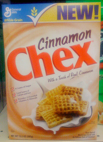 The front of a box of General Mills' Cinnamon Chex cereal. Photographed at V.G.'s Grocery Store in Owosso, MI in April of 2009.