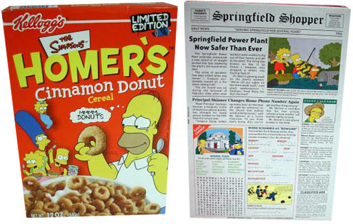Limited edition cereal front and back. The back of the box is the Springfield Shopper including a search-a-word puzzle about The Simpsons.