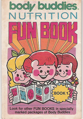 From General Mills' Body Buddies cereal, it's a Body Buddies Nutrition Fun Book. "Look for other Fun Books in specially marked packages of Body Buddies."