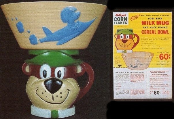 From Kellogg's Corn Flakes Cereal, a Yogi Bear Milk Mug and Huck Hound Cereal Bowl.