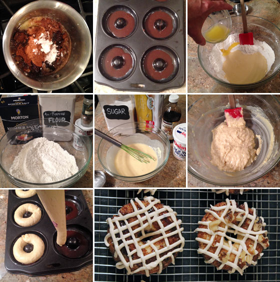 Place all icing ingredients in a medium bowl and mix until completely combined and frosting-like. Transfer to a plastic baggie. Trim one of the bottom tips of the baggie and pipe lines of icing across each donut.