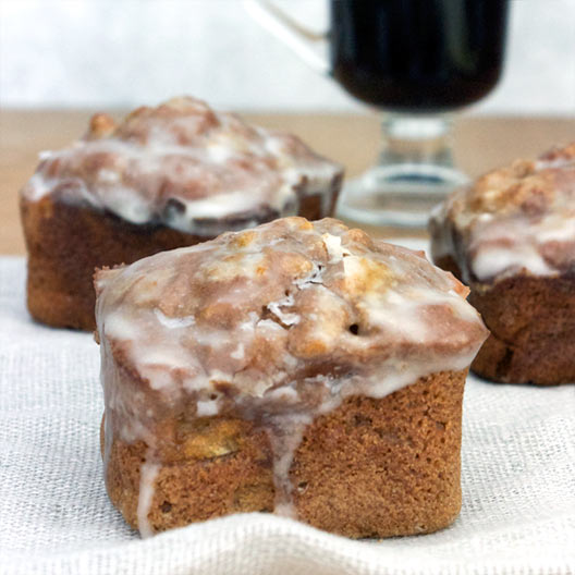A delicious cinnamon apple buttermilk muffin. The ingredients specify McIntosh apples, but you can use your favorite kind.